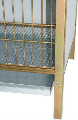 - Jaulero metálico con cerramiento en PVC, provisto de 4 patas para aislar del suelo.